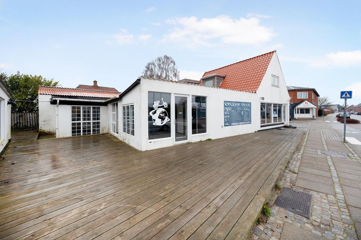 Nordicals Vendsyssel udbyder hermed en yderst interessant ejendom med bolig og erhverv. Ejendommen er beliggende på en trafikeret vej og består af både restaurant og bolig. Taget er med forskellige belægninger såsom tegltag, tagpap og eternittag samt delvist pudset facader og røde mursten og pvc vinduer. Der er en stor træterrasse, som fylder hele forsiden af bygningen.