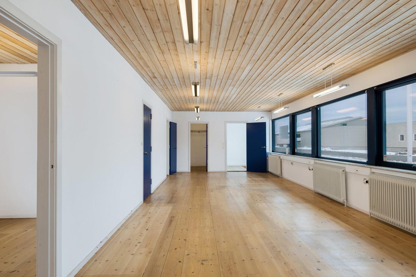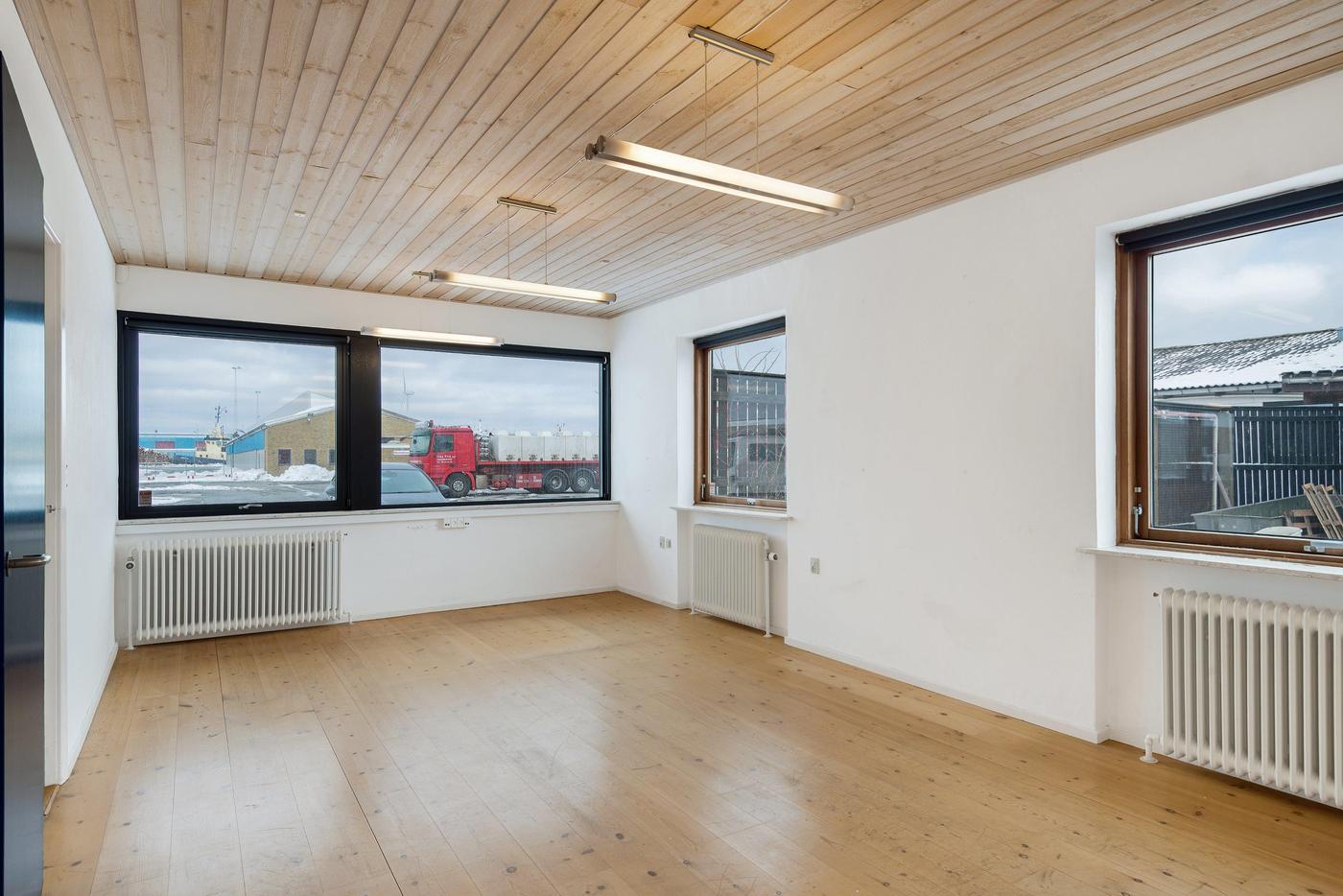 Administrationsdelen på 117 m² er indrettet med stort administrationslokale med plads til 4 arbejdspladser, mødelokale, kontor, toilet, depotrum, entré, thekøkken, teknikrum. Der er tilbygget isoleret lager på ca. 40 m². Ejendommen indeholder desuden uisoleret bådhus på ca. 55 m² med en lofthøje på ca. 4 m, samt cykelskur/udhus på 30 m².