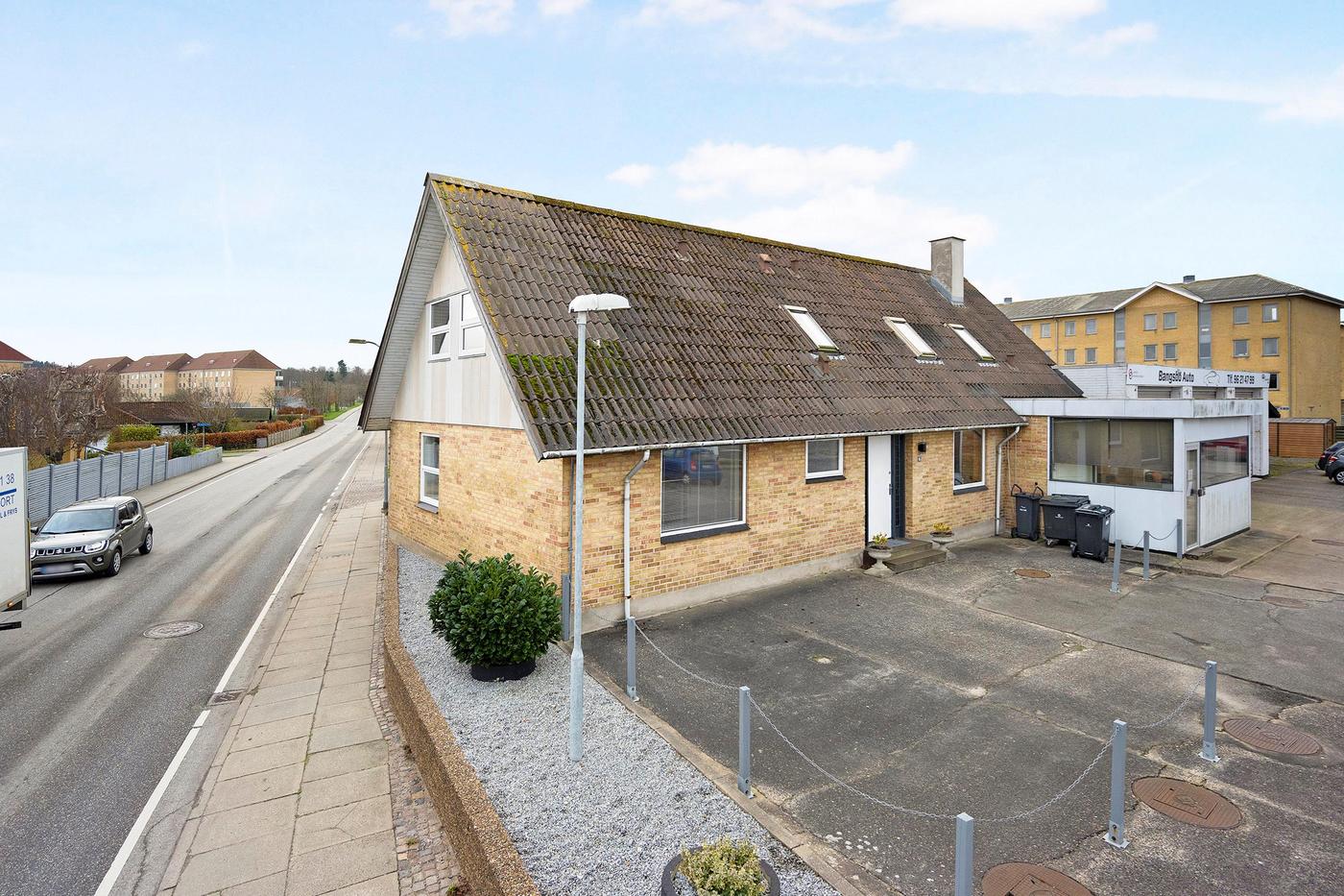 Nordicals Vendsyssel udbyder en facadestærk investeringsejendom med en synlig placering ud til trafikeret omfartsvej i den sydlige del af Frederikshavn. Ejendommen er beliggende på Gærumvej 85, og på adressen finder man denne investeringsejendom, der indeholder autoværksted med et samlet erhvervsareal på 241 m² samt en gulstensvilla med et boligareal på 182 m².
