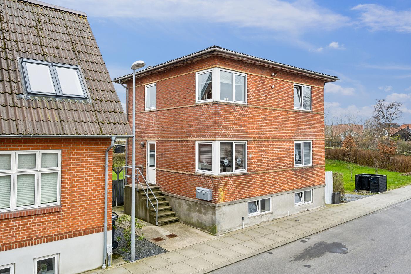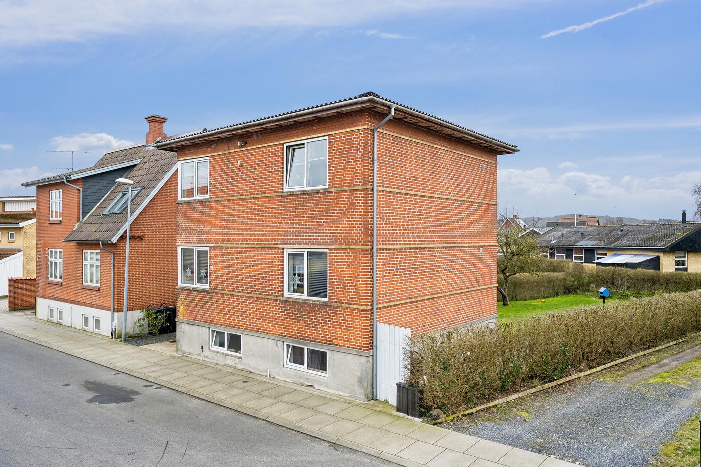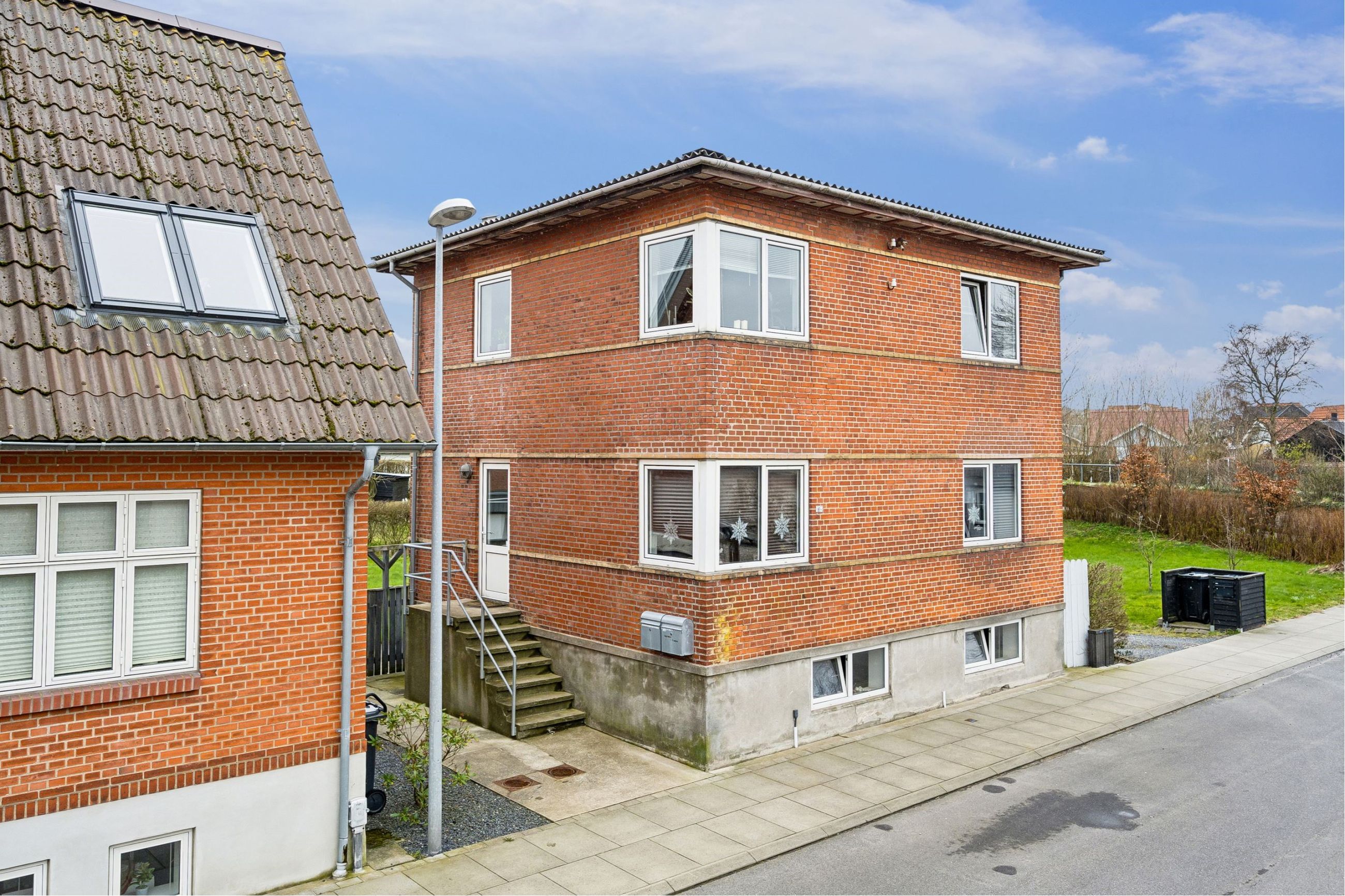 Ejendommen er opført i 1934 og fremstår med facader i røde mursten, plastikvinduer og etternittag.