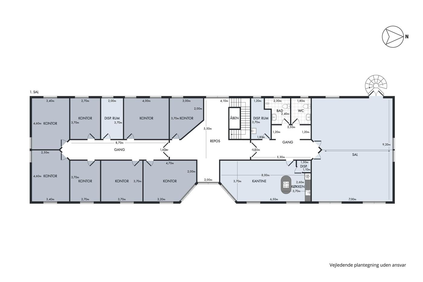 Lokalerne er klar til indflytning med akustiklofter, tæppebelægninger og fast grundbelysning m.m.