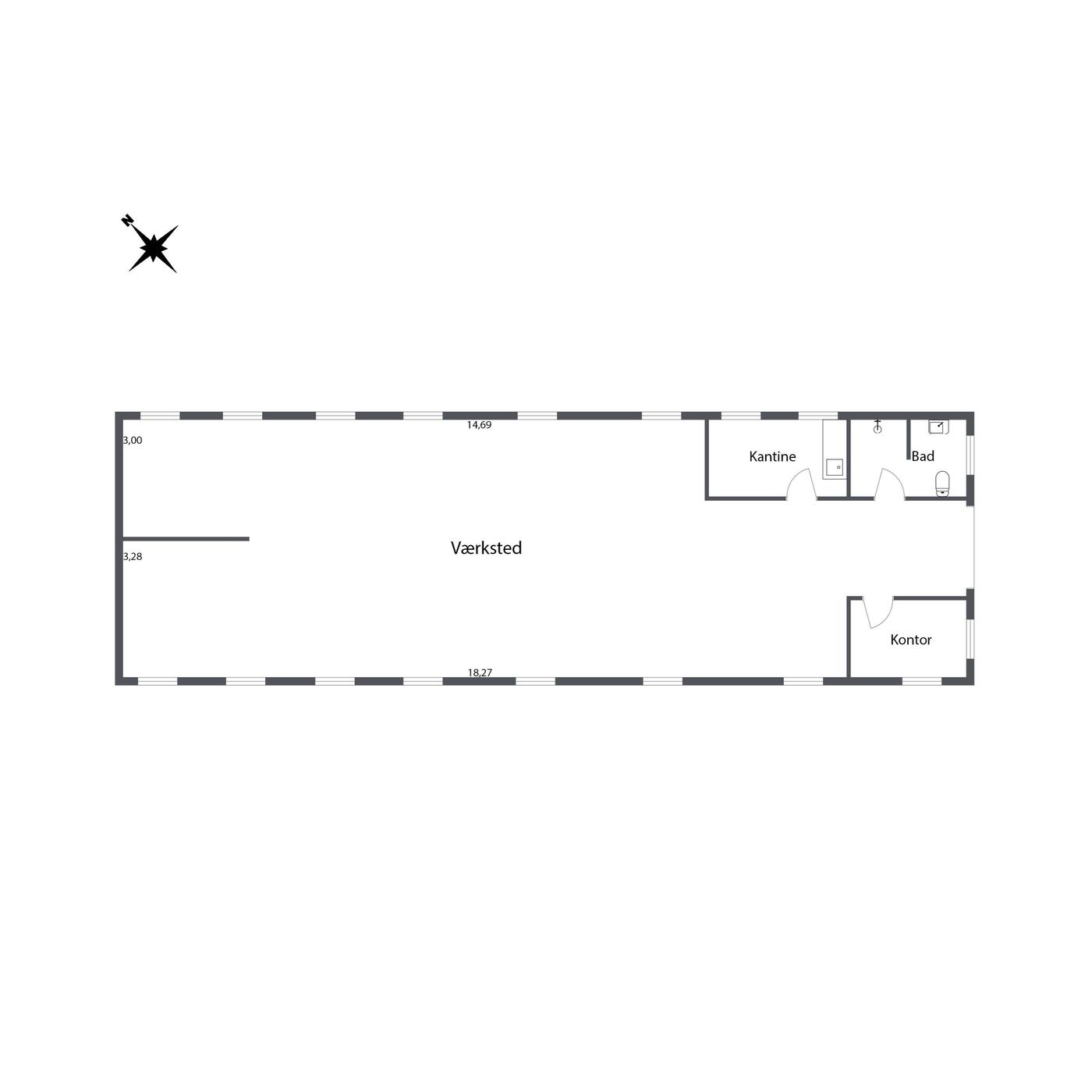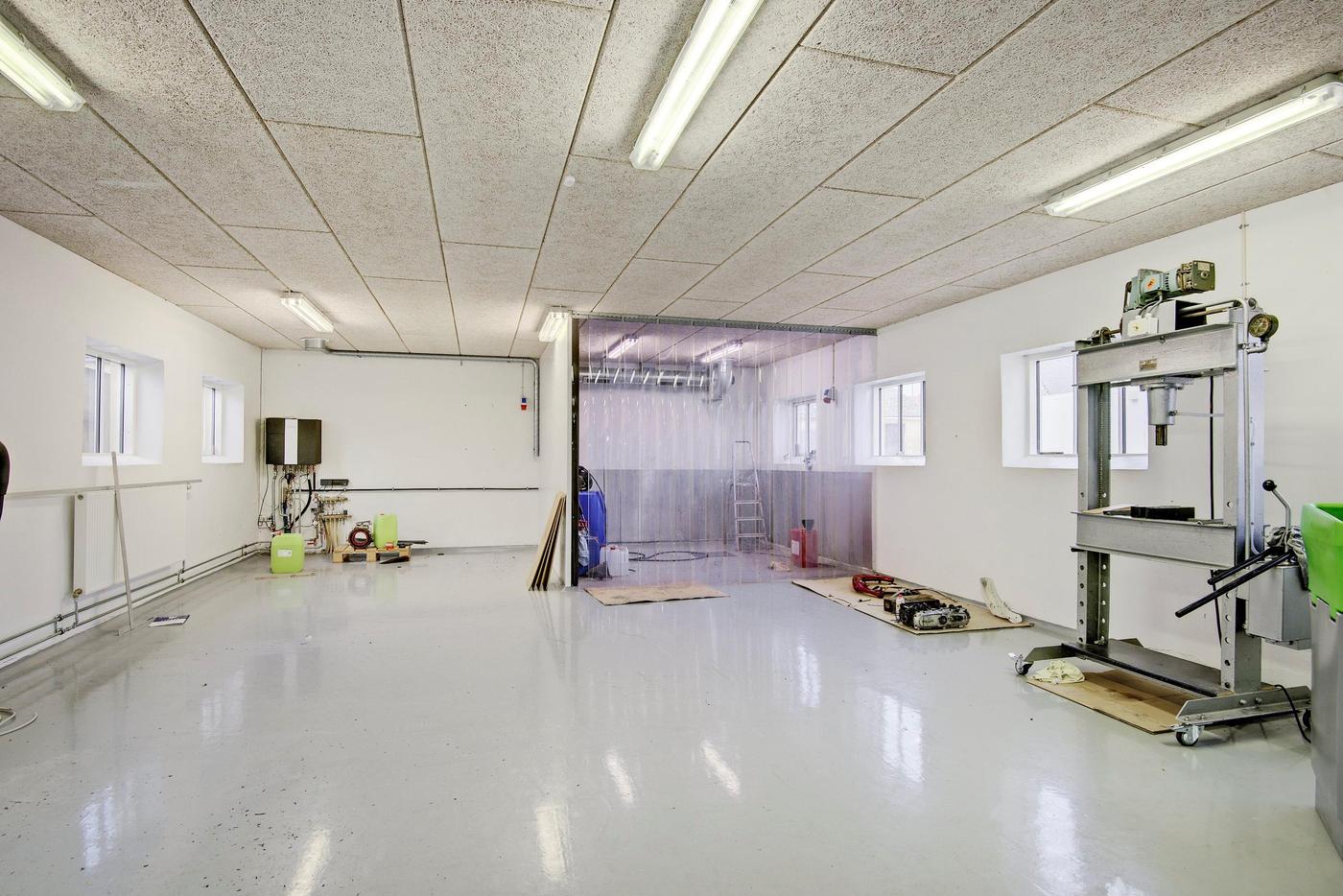 Ejendommens areal udgør 154 m² i et plan og er indrettet med kontor, kantine, toilet/bad samt værksteds- og lagerrum. Ejendommen er i rigtig flot stand og er i 2014 blevet totalrenoveret med tagpap tag og alu energi vinduer. Der er blevet lagt 300 mm isolering på loftet, 50 mm udvendig isolering på alle ydervægge og lagt betongulv med 300 mm isolering. Der er desuden blevet installeret fjernvarme. Der er etableret både gulvvarme og radiatorer i alle rum. I forbindelse med renoveringen er der lavet badeværelse med separat brucheniche og lavet køkken/kantine.
