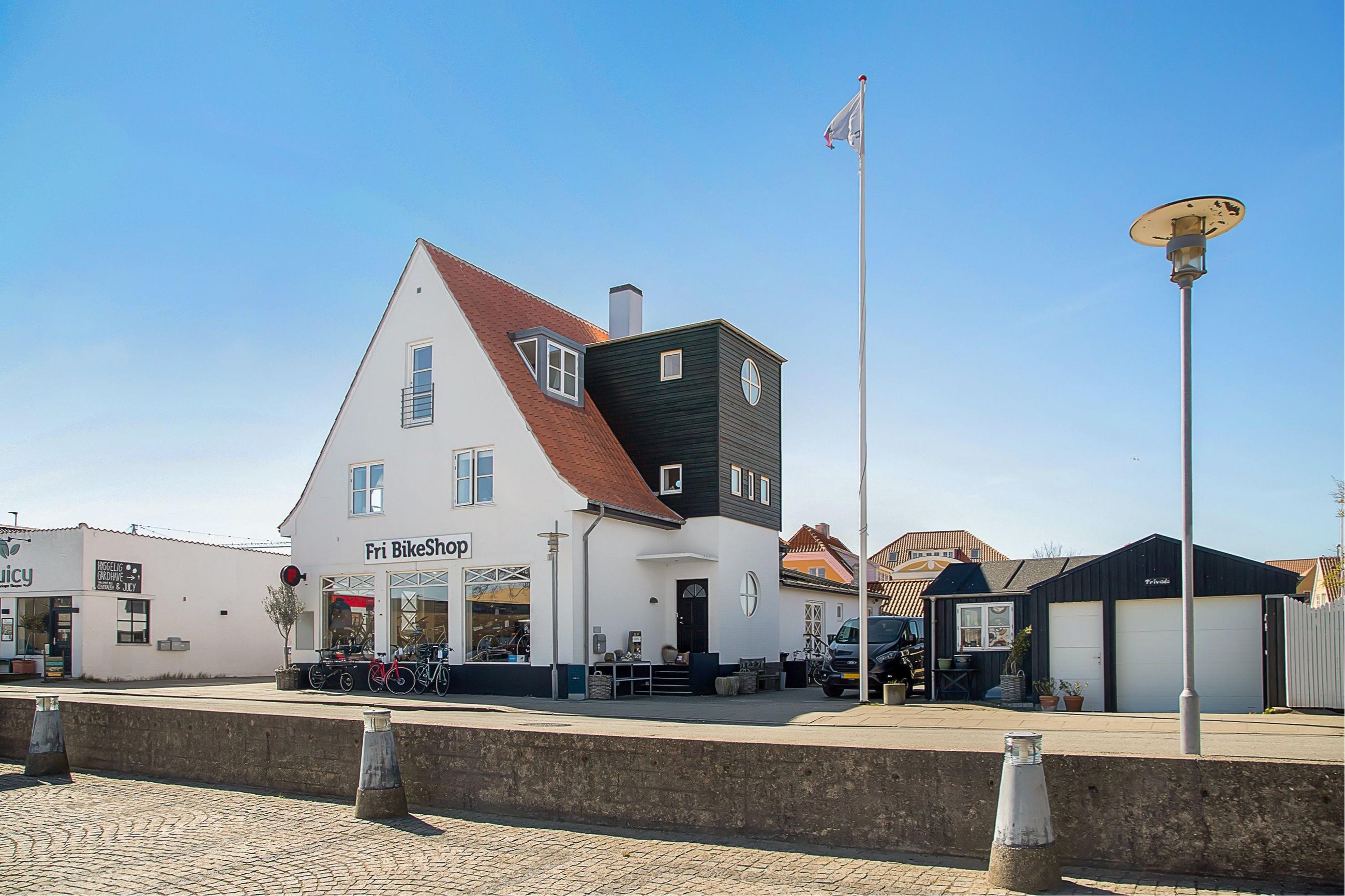Bygningen på Fiskergangen 10 er opført tilbage i 1934, og den har gennemgået en totalrenovering. Ejendommen fremstår med rødt tegltag og hvidmalede pudsede facader, og bygningen fremtræder yderst præsentabel og velholdt. Etagearealet på ejerlejligheden udgør i alt 334 m² inklusiv kælder, og erhvervsdelen er udlejet til Fri Bikeshop Skagen, der tidligst kan opsige lejemålet den 01. august 2029. I ejerforeningen er der også en beboelseslejlighed.